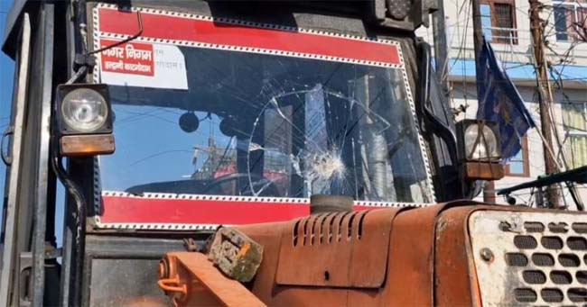 इसी दौरान कुछ अज्ञात लोगों ने नगर निगम की जेसीबी पर पत्थर फेंक दिए, जिससे मशीन का शीशा टूट गया। घटना के बाद मौके पर तनाव की स्थिति उत्पन्न हो गई, जिसके चलते फिलहाल अतिक्रमण हटाने की कार्रवाई को रोक दिया गया है।